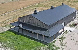 Attached to the bard as an extra covered roof top to store hay or ant other items.